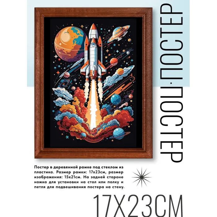 Постер в рамке 17х22см Полет в космос POSV-0483