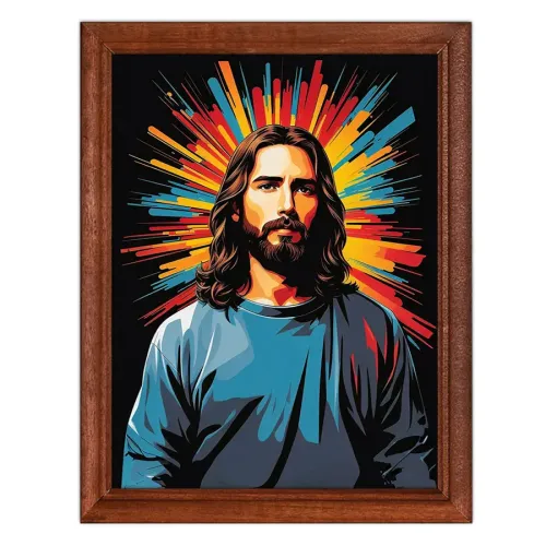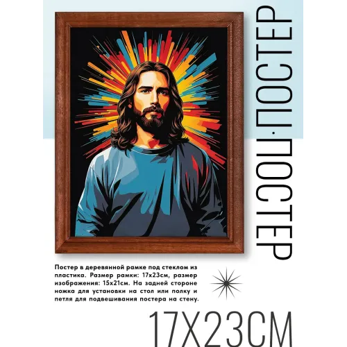 Постер в рамке с изображением Иисуса. Деревянная рамка под стеклом.