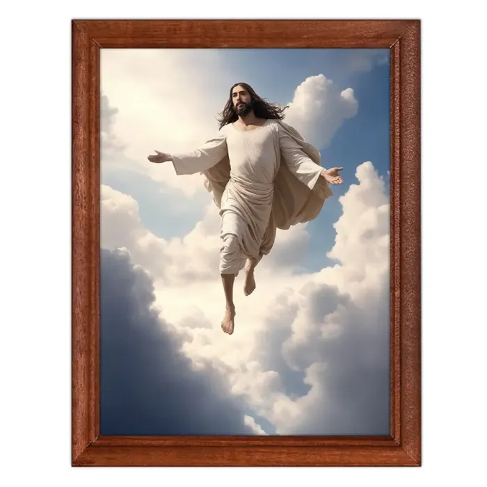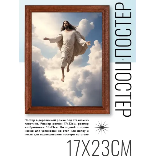 Постер в рамке с изображением Иисуса для интерьерного декора. Материал рамки — дерево, изображение защищено стеклом.