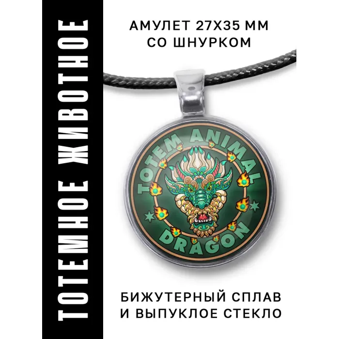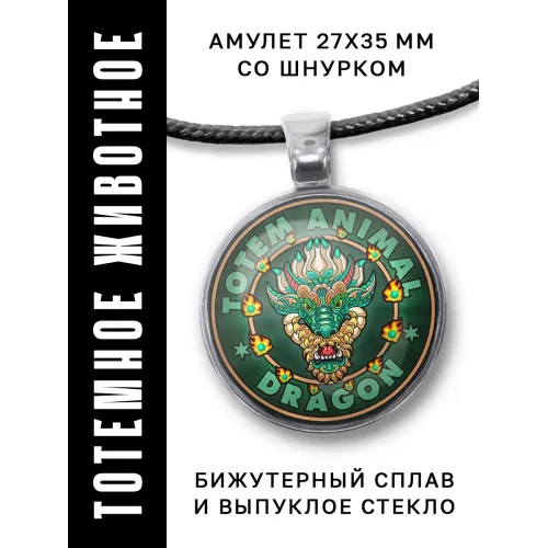 Амулет Totem с изображением Дракона является мощным символом власти и силы, а также мудрости и проницательности. Традиционно считается, что тотем дракон наполняет энергией, способствуя достижению поставленных целей. Диаметр амулета составляет 28 мм, он изготовлен из бижутерного сплава с покрытием под оружейную сталь. Упаковка включает полипропиленовый пакетик с отверстием под еврокрючок, вкладыш и описание. В комплект входит чёрный шнурок с застёжкой для удобства ношения.