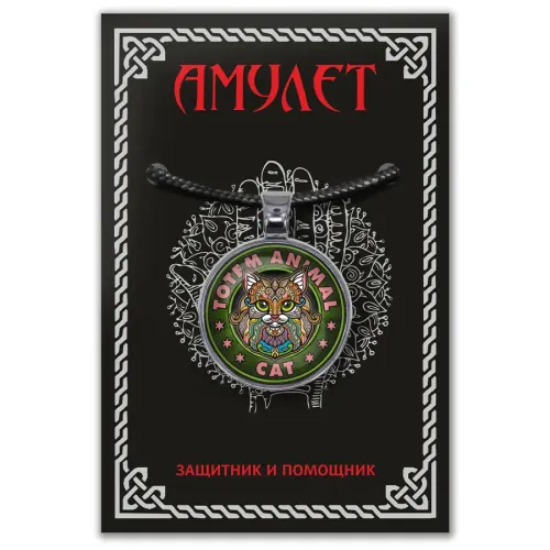 Амулет с изображением кошки, изготовленный из бижутерного сплава.