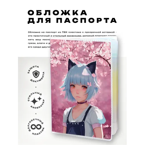 Обложка для паспорта ПВХ Аниме девушка неко MOB559
