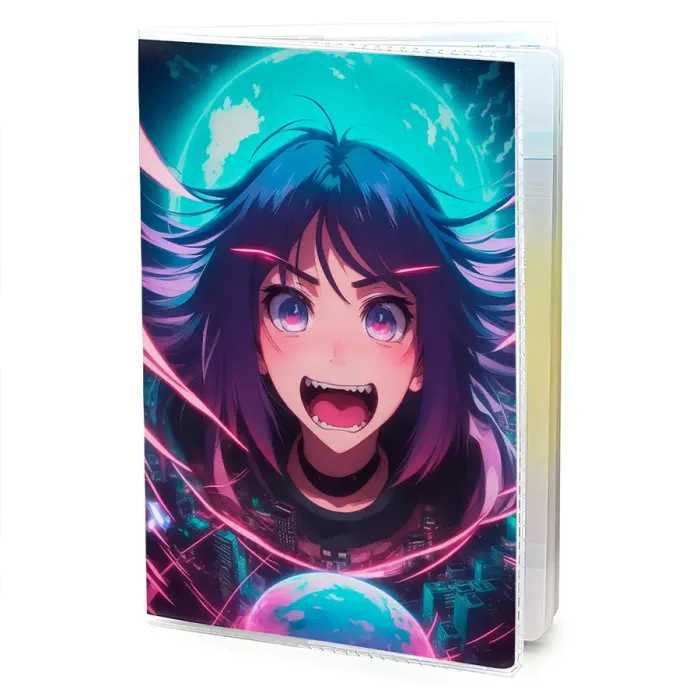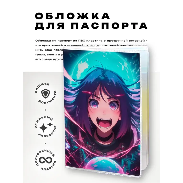 Обложка для паспорта из прозрачного ПВХ пластика с полиграфической вставкой с изображением аниме девушки.