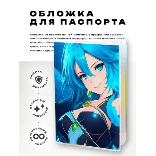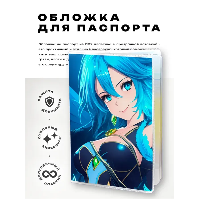 Обложка для паспорта из прозрачного ПВХ пластика с полиграфической вставкой в стиле аниме-фэнтези.