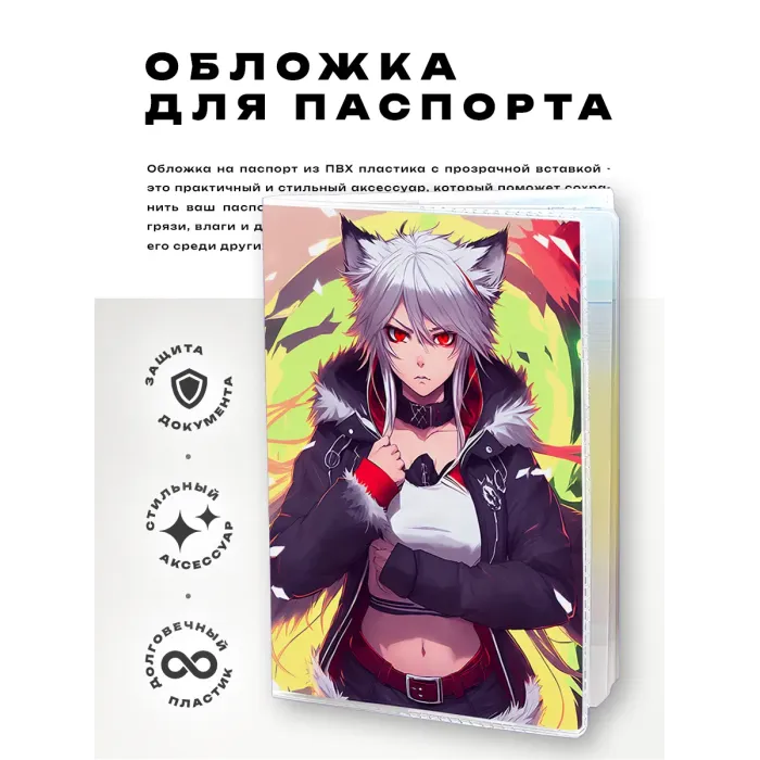 Обложка для паспорта ПВХ Аниме девушка неко MOB564