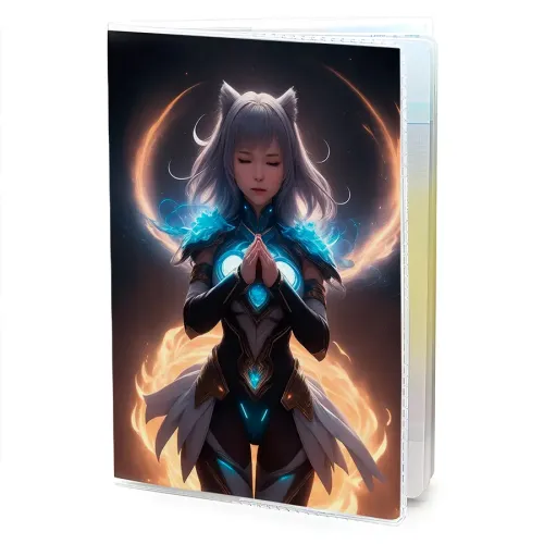 Обложка для паспорта из прозрачного ПВХ пластика с полиграфической вставкой, изображающей девушку неко.