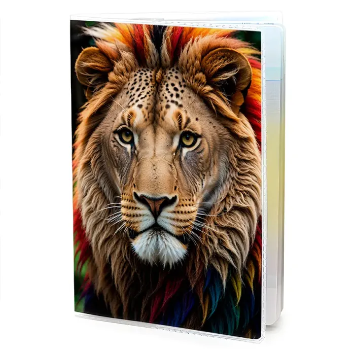 Обложка для паспорта из прозрачного ПВХ пластика с полиграфической вставкой с изображением льва.