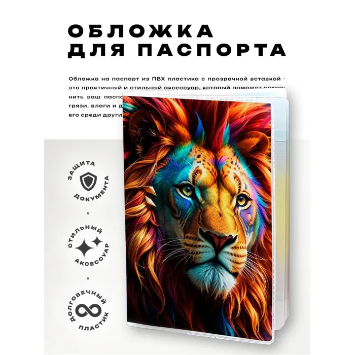 Обложка для паспорта ПВХ Радужный лев MOB578