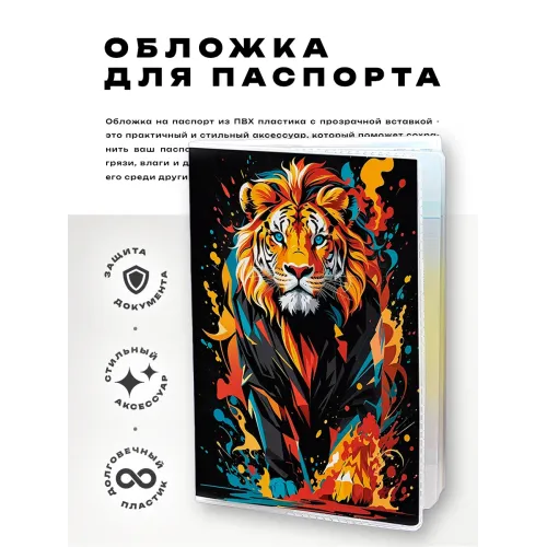 Обложка для паспорта из прозрачного ПВХ пластика с полиграфической вставкой с изображением дикой кошки.