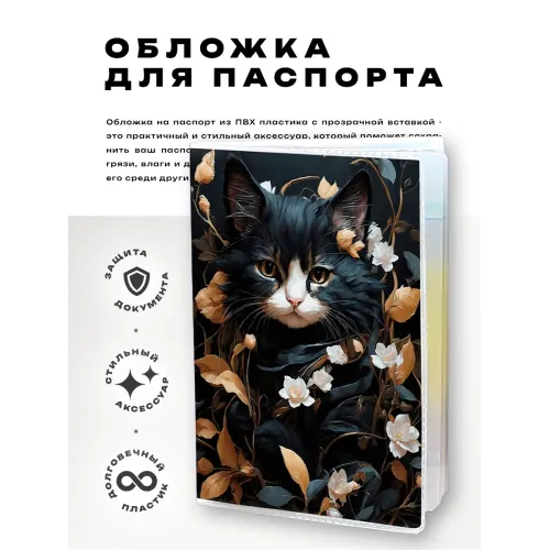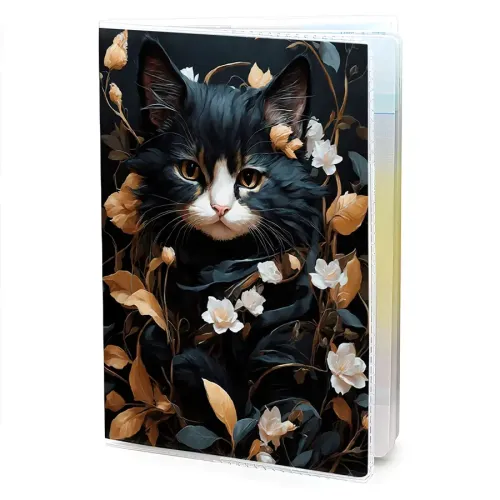 Обложка для паспорта ПВХ Кошка и цветы MOB600