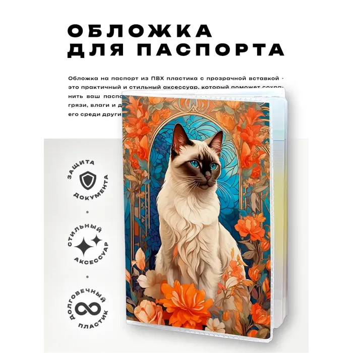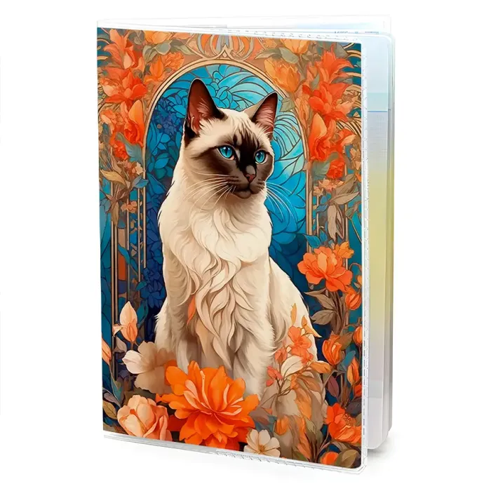 Обложка для паспорта из прозрачного ПВХ пластика с изображением сиамской кошки.
