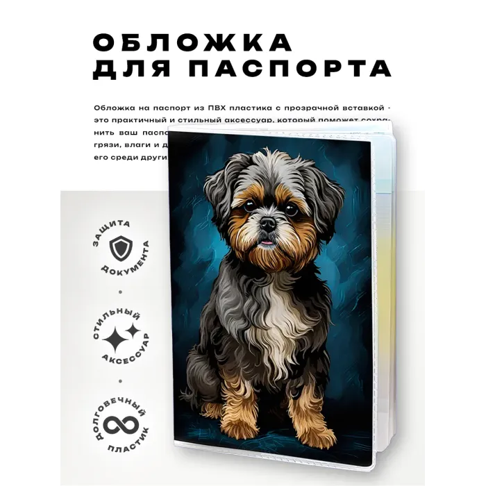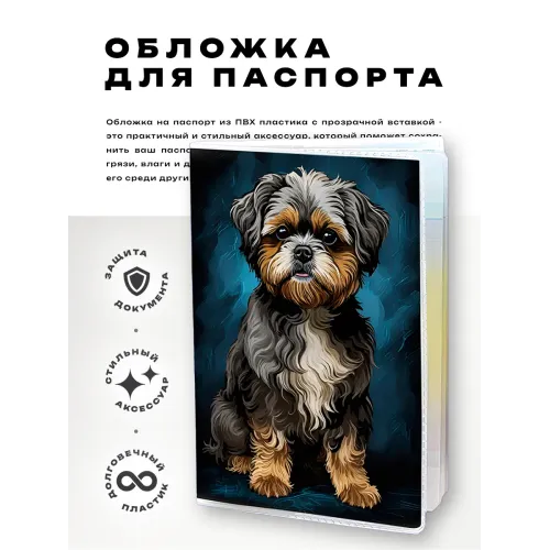 Обложка для паспорта из прозрачного ПВХ пластика с полиграфической вставкой с изображением пса.
