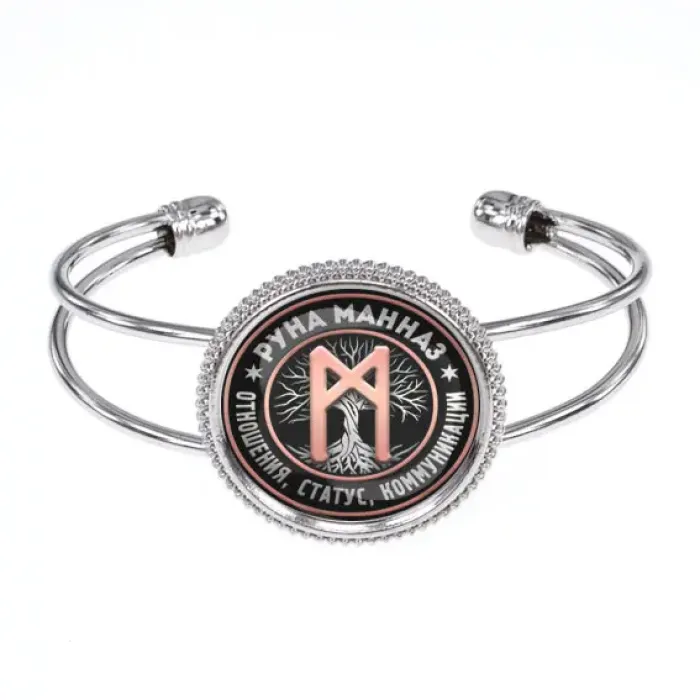 Браслет с символом руны Манназ. Изготовлен из бижутерного сплава со стеклянным элементом.