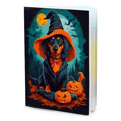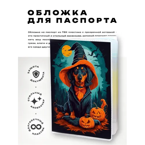 Обложка для паспорта из прозрачного ПВХ с полиграфической вставкой с изображением волшебной таксы.