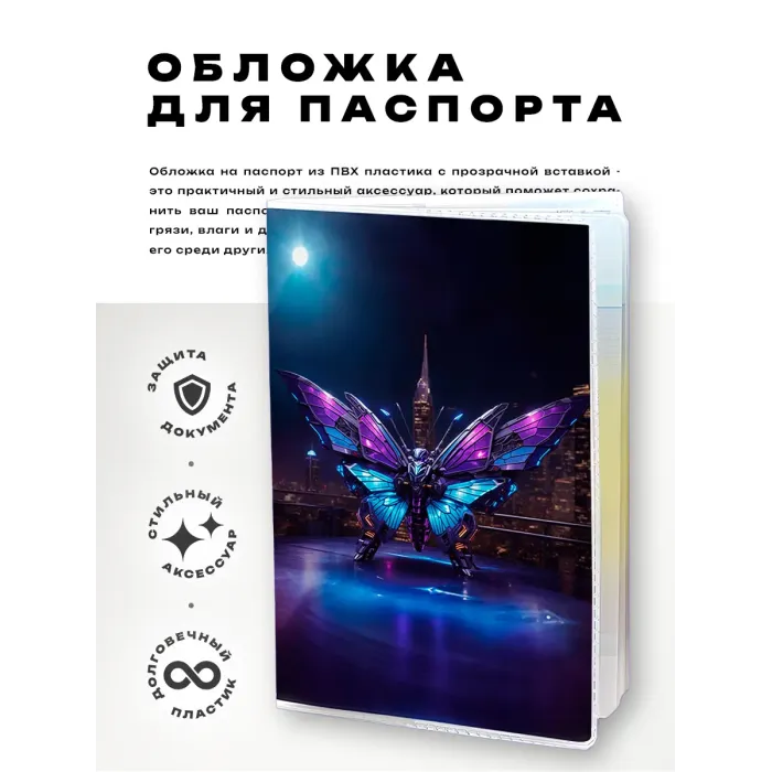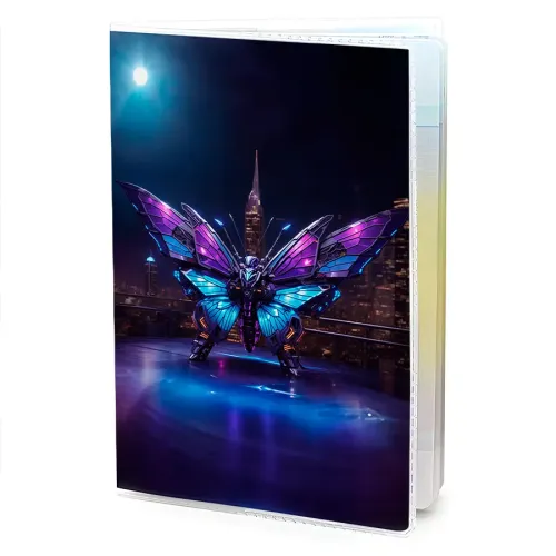 Обложка для паспорта ПВХ Киберпанк бабочка MOB646