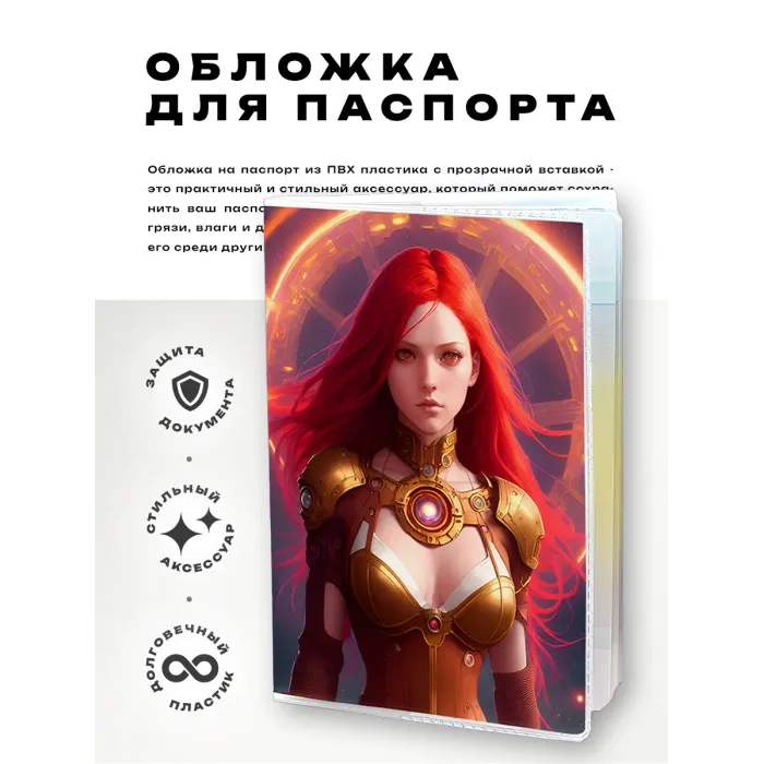 Обложка для паспорта из прозрачного ПВХ пластика с дизайном «Девушка с красными волосами».