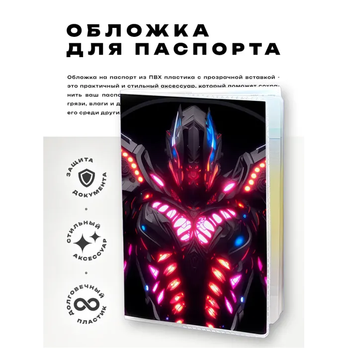 Обложка для паспорта из прозрачного ПВХ пластика с полиграфической вставкой в стиле киберпанк.