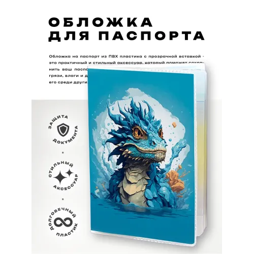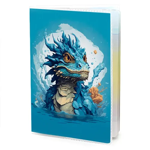 Обложка для паспорта из прозрачного ПВХ пластика с полиграфическим изображением синего дракона.