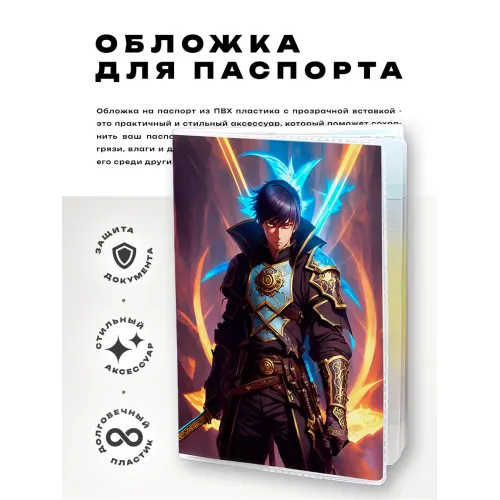Обложка для паспорта ПВХ Аниме парень с мечом MOB674