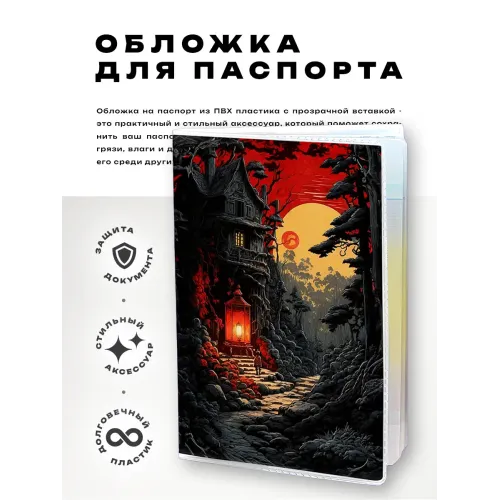 Эта обложка для паспорта выполнена из прозрачного ПВХ пластика и украшена полиграфической вставкой с изображением уютной хижины в лесу. Она не только защищает паспорт от повреждений, но и придаёт ему индивидуальность, отражая любовь к природе и путешествиям. Обложка упакована в удобный полипропиленовый пакет с вырубкой под еврокрючок, что делает её отличным вариантом для подарка или личного использования. Эстетичный дизайн и практичность делают этот аксессуар незаменимым спутником в любом путешествии.