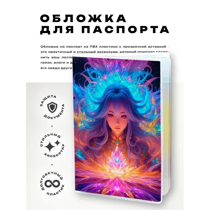 Обложка для паспорта из прозрачного ПВХ пластика с полиграфической вставкой дизайна «Молодая колдунья».