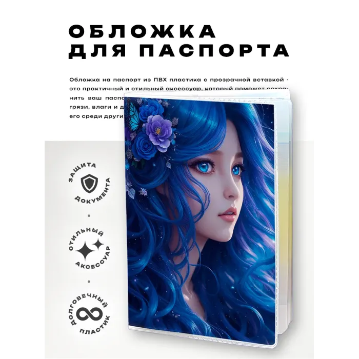 Обложка для паспорта ПВХ Девушка с синими волосами MOB690