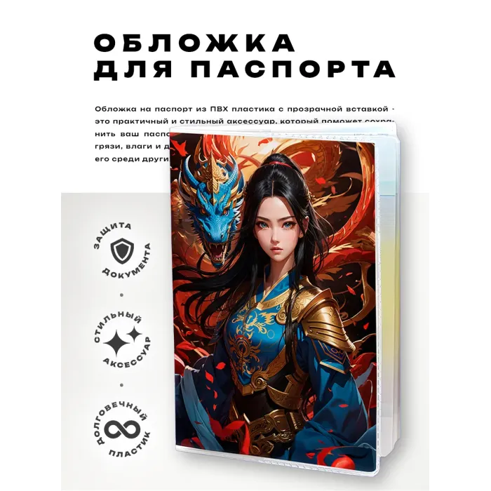 Обложка для паспорта ПВХ Девушка с драконом MOB706