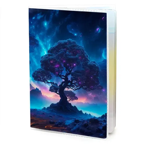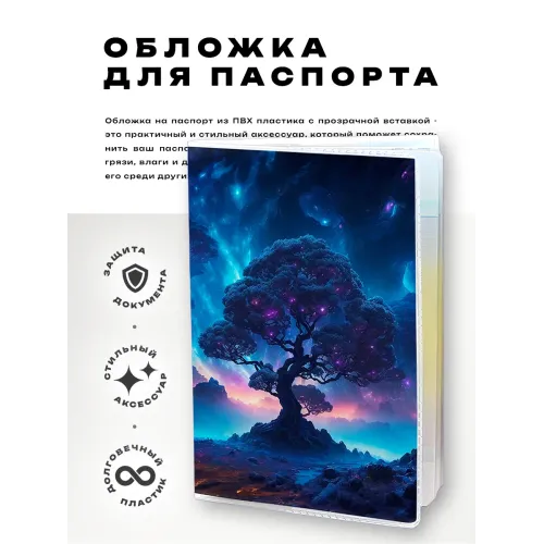 Обложка для паспорта из прозрачного ПВХ с полиграфической вставкой с изображением сакрального дерева.