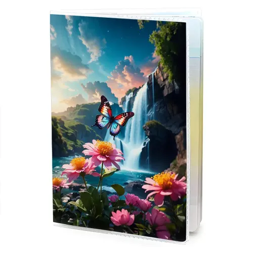 Обложка для паспорта ПВХ Бабочка на фоне водопада MOB731