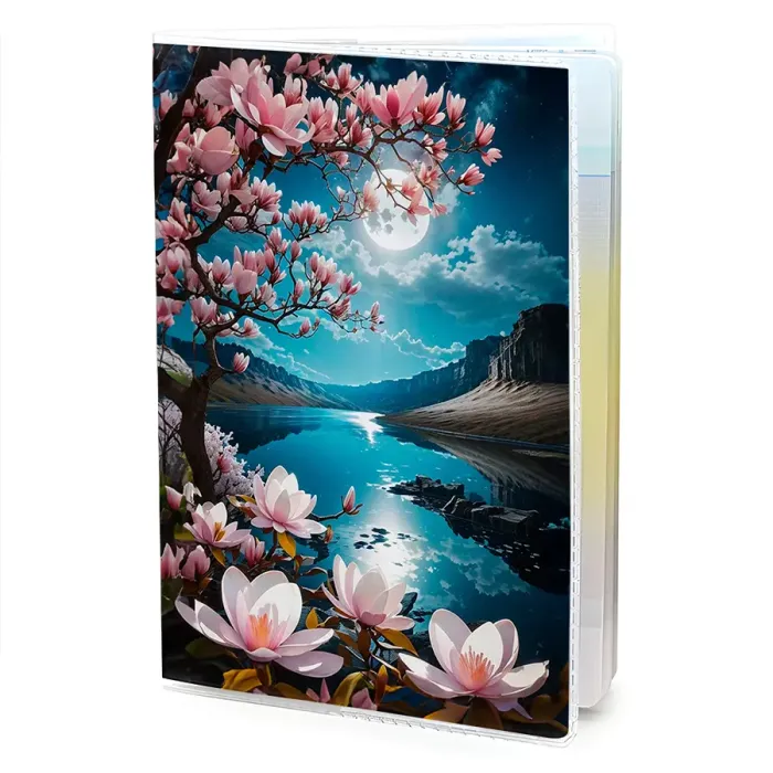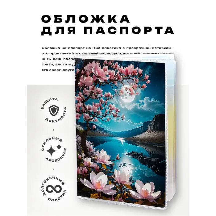 Обложка для паспорта из прозрачного ПВХ пластика с полиграфической вставкой с изображением сакуры.