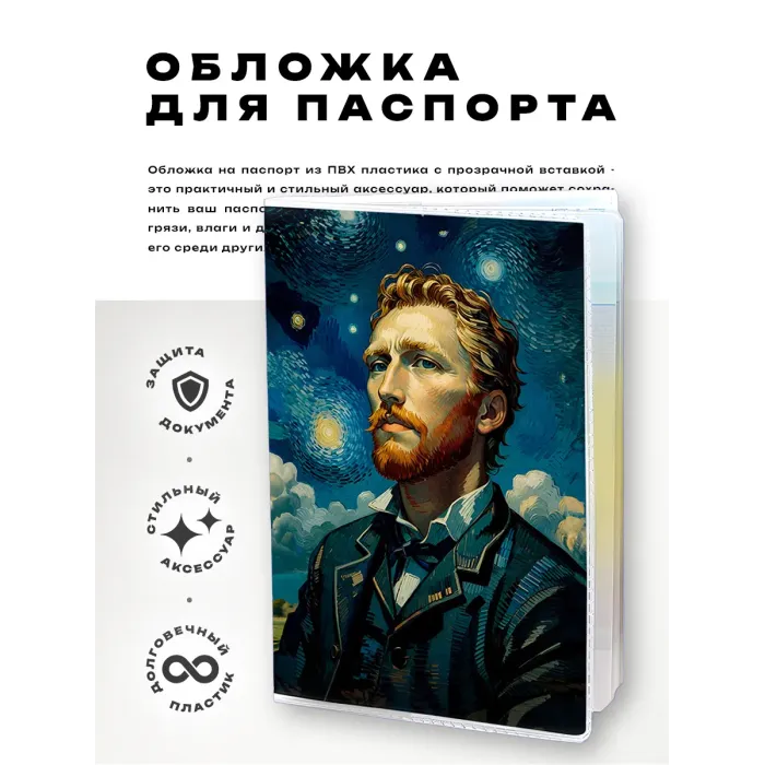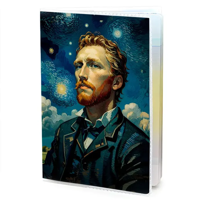Обложка для паспорта из прозрачного ПВХ пластика с полиграфической вставкой с изображением Ван Гога.