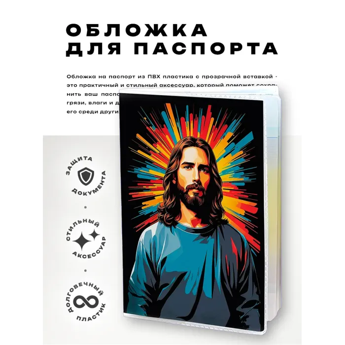 Обложка для паспорта из прозрачного ПВХ пластика с изображением Иисуса.