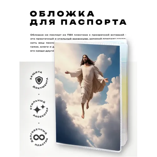 Обложка для паспорта из прозрачного ПВХ пластика с изображением Иисуса.