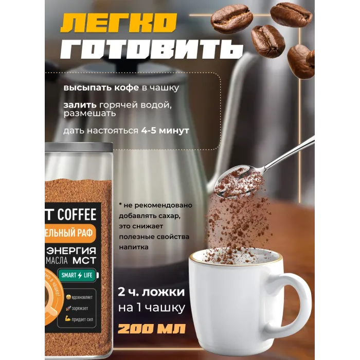 Состав: Арабика с добавлением MCT-масла (из кокосового масла)