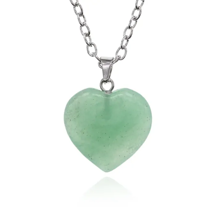 Кулон в форме сердца из натурального нефрита и бижутерного сплава с серебристым покрытием.