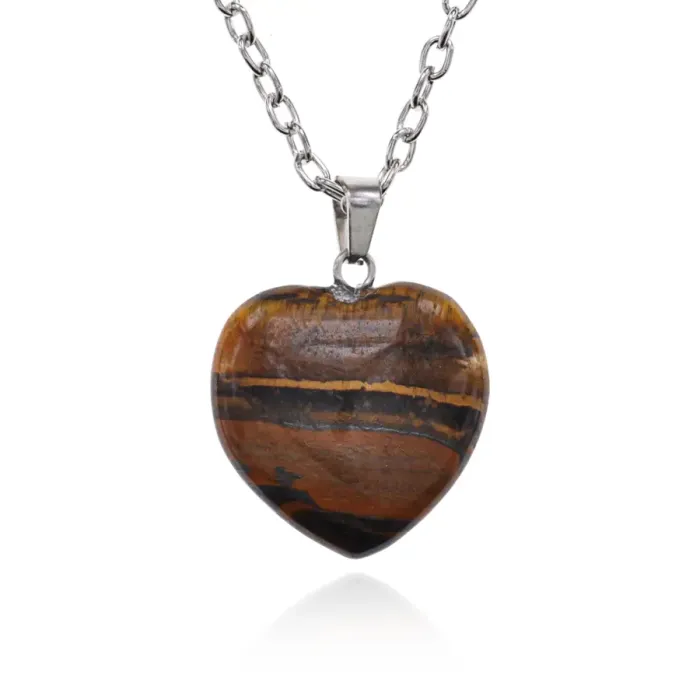 Кулон в форме сердца из натурального камня тигровый глаз на регулируемой цепочке.