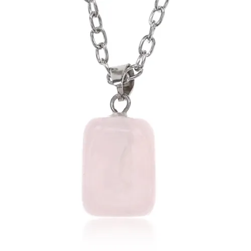 Кулон с натуральным камнем розовый кварц в оправе из бижутерного сплава.