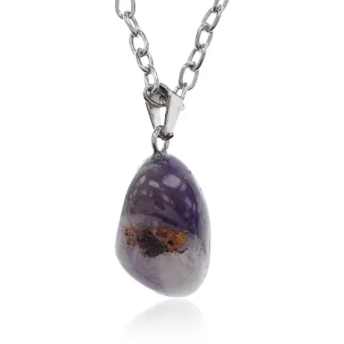 Кулон с натуральным аметистом на цепочке из бижутерного сплава.