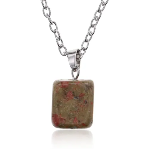 Кулон из натурального камня унакит в металлической оправе с цепочкой.