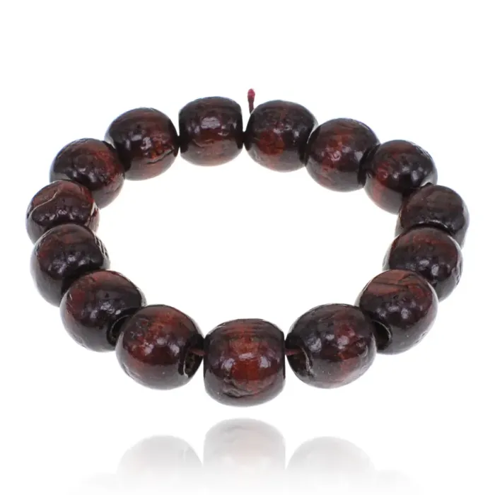 Деревянный браслет из бусин диаметром 12 мм темно-коричневого цвета.