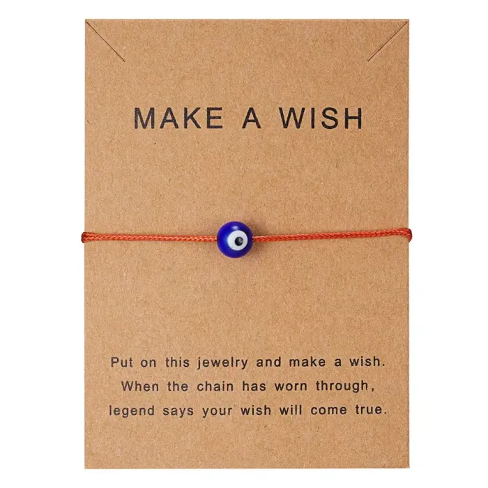 Браслет из красной нити, предназначенный в качестве сувенира или аксессуара. Изготовлен из акрила, металла и стекла, имеет регулируемый обхват запястья.
