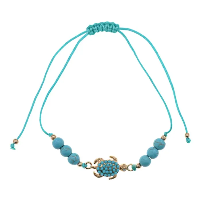 Браслет Черепаха с бирюзой — это стильный аксессуар, который сочетает в себе элементы природы и искусства. Изготовленный из синтетической бирюзы, металла с покрытием под золото и акрила, он станет ярким дополнением к любому образу.
