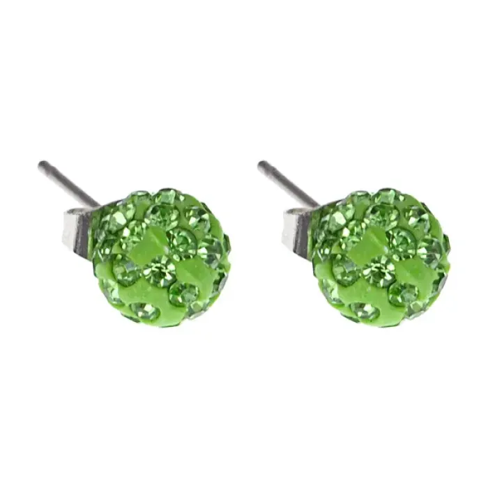 Серьги-пусеты с бусинами Шамбала диаметром 8 мм, цвет зеленый.