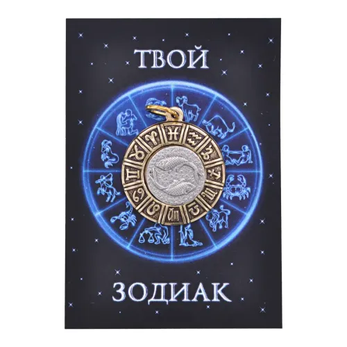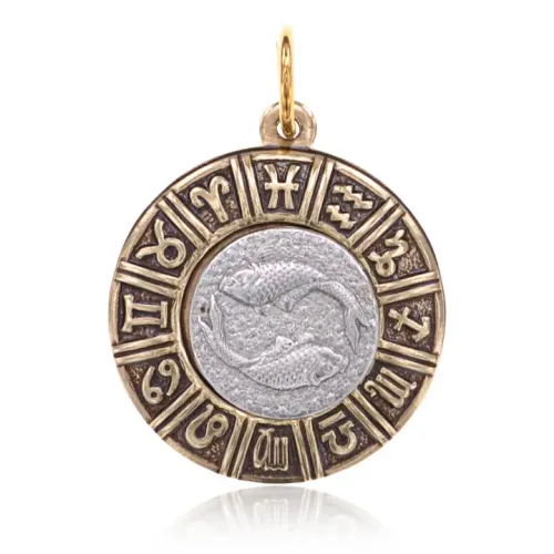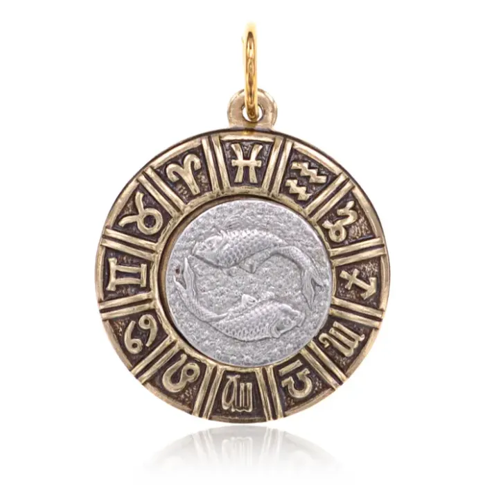 Кулон с символом знака зодиака Рыбы. Изготовлен из латуни с металлическим покрытием под серебро.