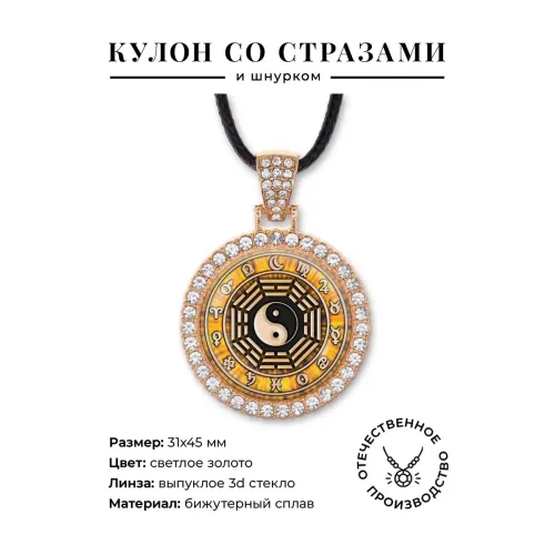 Кулон со стразами в виде символа Инь-Ян. Изготовлен из бижутерного сплава с покрытием под светлое золото.