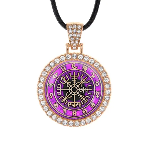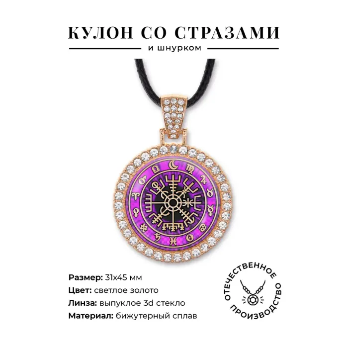 Кулон со стразами Вегвизир из бижутерного сплава с покрытием под светлое золото. Изображение защищено выпуклой стеклянной линзой.