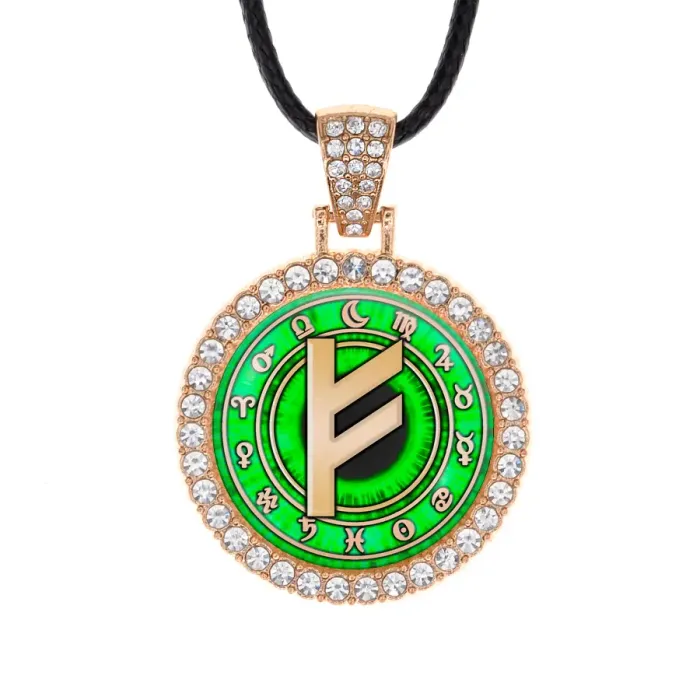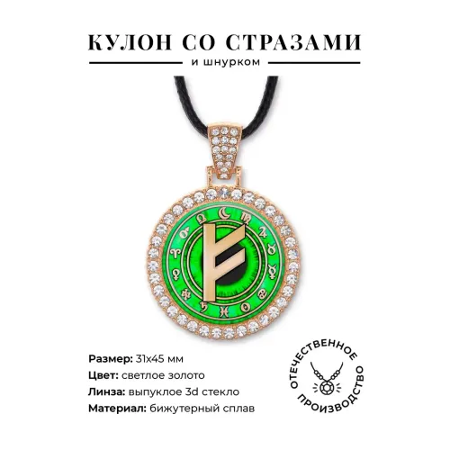 Кулон-амулет Феху из бижутерного сплава со стразами и стеклянной линзой.