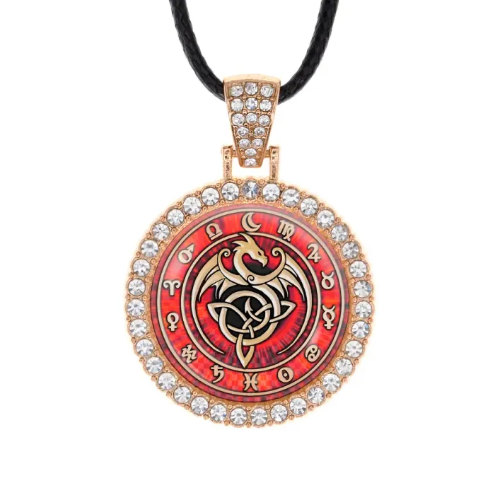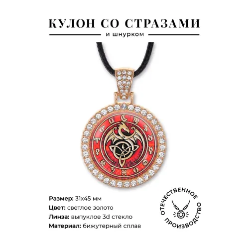Кулон со стразами в виде кельтского дракона из бижутерного сплава с покрытием под светлое золото.