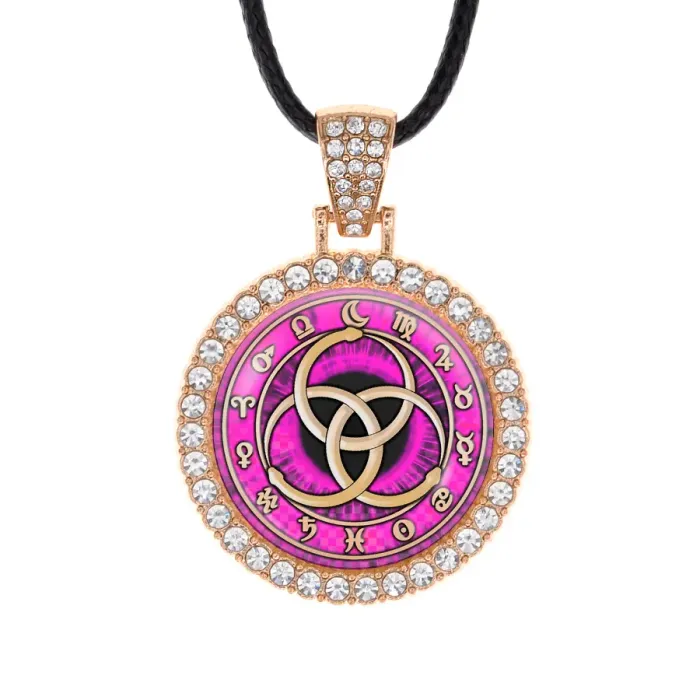 Кулон-амулет Уроборос из бижутерного сплава со стразами и выпуклой стеклянной линзой.