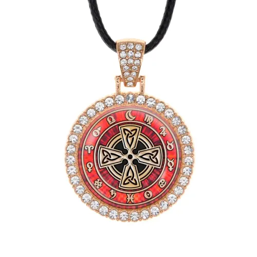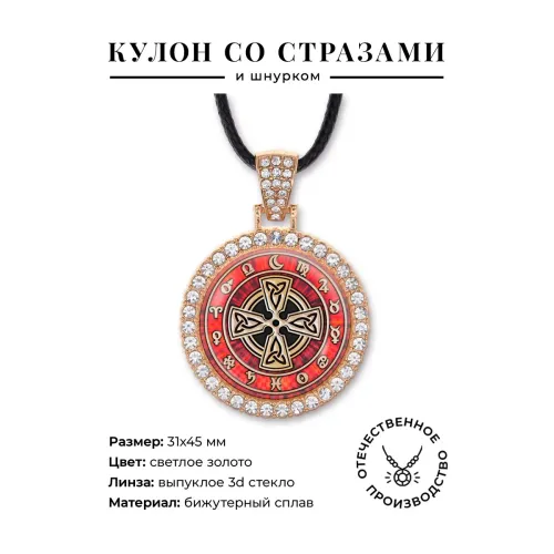 Кулон «Солнечный крест» из бижутерного сплава со стразами и покрытием под светлое золото.